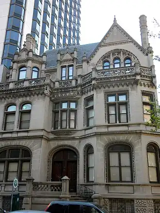 This district encompasses fifty-one contributing buildings located one block east of Rittenhouse Square. It includes four-and-one-half to five-story monumental residences that were designed in the Italianate style, brick rowhouses that date to the 1860s and 1870s, some of which have mansard roofs and dormers, and nineteenth century carriage houses. Also located in the district is the Thomas Hockley House (1875), which was designed by architect Frank Furness (1839-1912).[2]