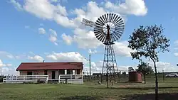 The Wandoan Information Centre on Royd Street provides information for visitors. It is housed in a former railway station building and is easily spotted by the large windmill beside it.[18]