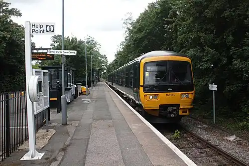 The station has a single platform, which is used by trains in both directions and is long enough to accommodate a four coach train.[2] There is a 30 space car park, but no station building other than a simple shelter. The station is unstaffed and tickets must be purchased on the train or on-line.[1]