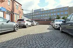 The hospital has its origins an isolation hospital which was constructed on the site in 1893.[1] The Warrington Union Workhouse Infirmary was built on the same site and opened in 1898.[1][2] The site was occupied by the Whitecross Military Hospital during the First World War.[1] The infirmary became the Warrington Borough General Hospital in 1930 and it joined the National Health Service in 1948.[2] Meanwhile the isolation hospital became known as the Aiken Street Hospital.[2]