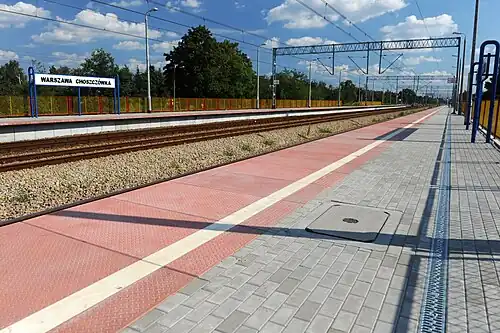 Warszawa Choszczówka railway station is a railway station in the Białołęka district of Warsaw, Poland. As of 2012, it is used by Koleje Mazowieckie, who run the KM9 services from Warszawa Wola or Warszawa Zachodnia through the north of the Masovian Voivodeship to Działdowo, in the Warmian-Masurian Voivodeship via Legionowo, Nasielsk, Modlin, Ciechanów and Mława, at all of which some trains terminate, and by Szybka Kolej Miejska, who run S9 services to Wieliszew, with some trains terminating at Legionowo or Legionowo Piaski.