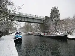 In the early 20th century, the Metropolitan Railway (MR) penetrated Hertfordshire and Buckinghamshire with its suburban railway, enticing Londoners with its "Metro-Land" advertising campaign promoting the new railway as an opportunity to live in a rural location with easy transport to central London.[9] The MR was also intent on providing a connection from Watford and planned a branch line from Moor Park via Croxley. The MR purchased a swathe of land from Gonville and Caius College, Cambridge along the planned route, and Parliamentary approval for the branch was granted in 1912. The project was hampered by disagreements with the Watford Borough Council and by the outbreak of World War I in 1914, and construction of the 2.5-mile (4.0 km) branch did not begin until 1922. The MR experienced difficulties running the line across the River Gade and the Grand Junction Canal, and this pushed costs up to £300,000.[10]