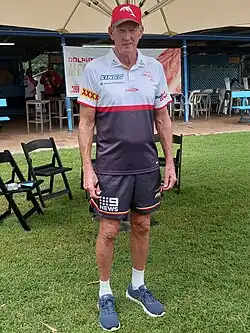 Bennett's playing career began with appearances for Warwick and Toowoomba in the South-West District Rugby League, and the All Whites in the Ipswich Rugby League. His first-grade appearances were for Past Brothers and Southern Suburbs in the Brisbane Rugby League premiership (BRL). He was a talented wing and goal-kicker, and represented Queensland nine times between 1971 and 1973, including seven games against New South Wales.[9] Coached by Bob Bax, Bennett credits him as being a major influence in his own later coaching career.[10] Bennett also played two tour matches for Australia on the 1971 tour of New Zealand. In 1972, Bennett played for Toowoomba in the last Bulimba Cup Final against Brisbane.[11] After that, he played for Huddersfield in England alongside fellow Queenslander and future brother-in-law Greg Veivers.[12] Bennett played for Brisbane's Brothers club and under coach Paul Broughton reached the 1974 Grand Final which they lost to Fortitude Valley. Bennett was the top tryscorer in the 1975 Brisbane Rugby League season.[13]