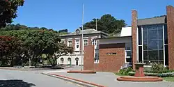 Wellington College's Pavilion, Firth House, and the Gifford Observatory were opened on 1 December, 1924. The War Memorial Hall was opened on 2 March, 1928, financially supported by £6000 from the Old Boys' Association.[7] The War Memorial Hall and classroom wings were demolished by the Ministry of Works and replaced in the 1960s with a new hall and seven-storey Tower classroom block due to its lack of earthquake reinforcements.[8] The stained glass window from the front of the War Memorial Hall is now in the front of the existing hall.