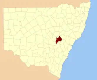 Wellington County is a county in New South Wales, Australia, which was one of the original Nineteen Counties. The town of Wellington is near the north-eastern edge. The Bell River is the boundary to the west, and the Cudgegong River to the north. It includes land on both sides of the Macquarie River.
