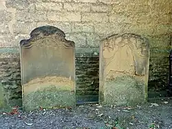 A third listed structure in the churchyard is a pair of ashlar headstones to Robert Camm, who died 1781, and his wife Elizabeth, who died 1788. The two became jointly Grade II listed on 21 June 1985.[39]