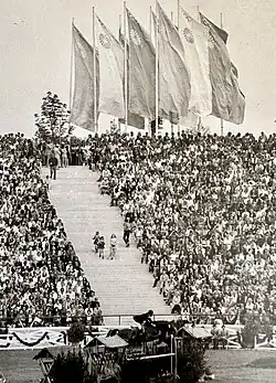 The equestrian community was initially shocked and amused when Canada entered three 20-year-olds, including two women, into the Three-Day Event, competing mainly against male cavalry officers and disbelieving South Americans. However, the skeptics were silenced when Wendy Irving from Hull, Quebec, secured a gold medal for the team with a flawless ride on High Wind.[5]