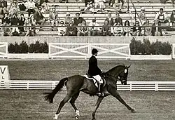 Wendy Dell and High Wind performing at the dressage phase, representing Canada at the 1972 Olympic Games in Munich Germany