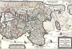 The River Vlie (also called Fli), is an extension of the IJssel branch of the Rhine River. The river divides the northern Netherlands into two parts, the western and the eastern part. In the eleventh century, heavy rainfall caused the river to flood over large parts of the land. The Zuiderzee bay (previously a lake called Lacus Flevo by Roman authors) was formed, separating West Friesland from the contemporary Province of Friesland.[1] In the Middle Ages, the Westflinge area of West Friesland became an island, bordered on the north by the Medem and Zijpe inlets, and to the south by various interconnecting lakes (now polder land) that were connected with the Zuiderzee. Because of this, the toponym "West Friesland" was applied more to the Westflinge area than to the original West Friesland.
