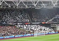 Their opening home game of the campaign came on 30 September to Rapid Wien. West Ham won the game 2–0 with goals from Declan Rice and Saïd Benrahma. Crowd violence marred the game, particularly after Rice's goal in the 29th minute, when Rapid Vienna fans jumped the barriers around the away supporters and objects were thrown between both sets of supporters.[107] The following month, West Ham were fined €60,000 by UEFA for the crowd trouble.[108]