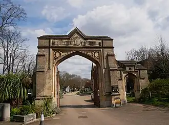 ![]() Gothic inner gates to the cemetery, designed by Sir William Tite | |