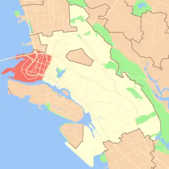 West Oakland is a neighborhood situated in the northwestern corner of Oakland, California, United States, situated west of Downtown Oakland, south of Emeryville, and north of Alameda. The neighborhood is located along the waterfront at the Port of Oakland and at the eastern end of the San Francisco–Oakland Bay Bridge. It lies at an elevation of 13 feet (4 m).