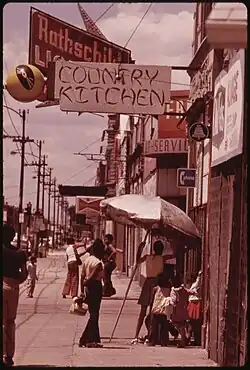 Puerto Ricans displaced by gentrification and city-backed urban renewal projects in Lincoln Park began moving to West Town and Humboldt Park by the thousands during the mid-late 1960s.[44][45] In 1960, West Town had a Latino population of 1%. By 1970, that number had grown to 39%.[46] Polish residents, who remained less upwardly mobile than the West Side's former German and Russian Jewish immigrants, remained in relatively large numbers in West Town centered around Catholic parishes. Humboldt Park began to see larger influxes of Puerto Ricans as the 1960s ended. In 1966, the first major urban Puerto Rican rebellion in the U.S. happened on Division Street, an event later known as the Division Street Riots.[47]