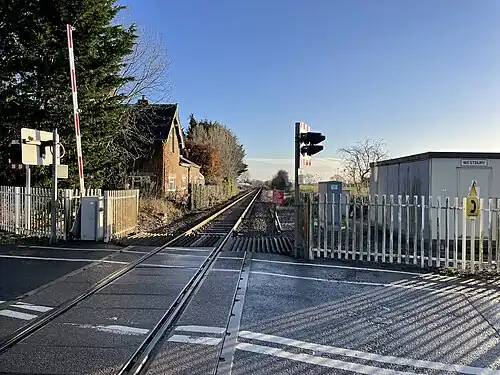 The former main building survives here in occupation as a private house, along with the now automatic level crossing over the B4387 road.[3]