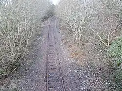 The now solely freight line running through the station site is still operational (datum 2018), serving the Killoch Washery that lies to the south-east, beyond the village of Drongan.