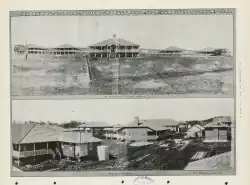 On Saturday 6 September 1919, John Huxham, the Queensland Home Secretary opened the Westwood Sanatorium,[20][21] a 64-bed sanitorium was opened in Westwood to treat miner's phthisis,[22] a lung disease suffered by miners from working in dusty conditions. Later, it treated patients with Tuberculosis.[23] In 1953, a ¾ mile bitumen road was built from the Huxham railway siding (just to the north of Westwood) to the sanitorium and named Haigh Drive in memory of Leonard Garfield Haigh, the former chairman of the Rockhampton Hospitals Board from 2 June 1933 to 16 February 1953. Commencing with a tiled-roof waiting shed at the siding with a plaque commemorating Haigh, the drive to the sanitorium was flanked with Peltophorum trees and was officially opened by James Larcombe (MLA for Rockhampton) in the presence of Haigh's widow on Sunday 1 November 1953.[24][25] More effective medical treatments for tuberculous resulted in the closure of the sanitorium in 1959, but the building continued to be used as a nursing home until the 1980s. The sanitorium buildings were then relocated or demolished; one is in use as a private home in Emerald.[26]