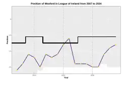 Wexford Youths finished the 2008 season in seventh place.[18] The Youths rose a place in the 2009 season, finishing 6th out of an expanded 12 teams[19]