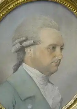 Sir John Whalley-Smythe-Gardiner, 1st Baronet, (1743–1797), Bath, 1780, bust length pastel portrait (12 × 9 inches), signed and dated by Lewis Vaslet (1742–1808), Bath, 1780.