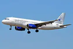White Airways S.A. (also known as White) is a Portuguese charter airline and ACMI airline headquartered in Porto Salvo, Oeiras.[1] It mainly operates charter flights from Lisbon Humberto Delgado Airport on behalf of tour operators as well as on lease on behalf of other airlines.