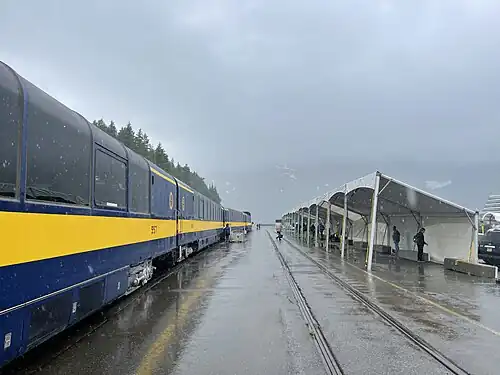 The Whittier HAP Depot is an Alaska Railroad passenger stop in Whittier, Alaska. The passenger stop is located along a siding in Whittier, immediately west of the railroad bridge crossing Whittier Creek at Alaska Railroad milepost 1.2. Although the railroad does not have a formal station building in Whittier, Glacier Discovery trains stop at this point across the street from the Holland America Line and Princess Cruises cruise-ship terminal in the city. Additional Alaska Railroad and Tour Alaska passenger trains, all operated by Alaska Railroad under charter to HAP Alaska-Yukon exclusively for passengers of Holland America Line and Princess Cruises, also stop at this point.[1]