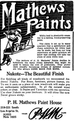 - ^ a b "Mathews Paint Company and Western Wholesale Drug Company on South Los Angeles Street Almost Completely Gutted by Flames of Unknown Origin," Los Angeles Times, May 18, 1907, page II-2