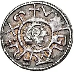 Coins from Wiglaf's reign are very rare. They can be divided into portrait and non-portrait types, and, of these, only the two non-portrait coins may be from Wiglaf's second reign. Other than these, there is no evidence of any Mercian coinage until the reign of Wiglaf's successor, Beorhtwulf, which began in about 840.[35] This may show that Wiglaf remained subject to Ecgberht's overlordship after 830, though most historians consider Wiglaf to have recovered his independence at that time.[36]
