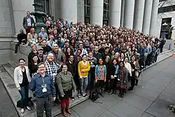 Wikimania is an annual global conference for Wikimedians and Wikipedians, started in 2005. The first Wikimania was held in Frankfurt, Germany, in 2005. Wikimania is organized by a committee supported usually by the local national chapter, with support from local institutions (such as a library or university) and usually from the Wikimedia Foundation. Wikimania has been held in cities such as Buenos Aires,[39] Cambridge,[40] Haifa,[41] Hong Kong,[42] Taipei, London,[43] Mexico City,[44] Esino Lario, Italy,[45] Montreal, Cape Town, Stockholm, and Nairobi[46]. The 2020 conference scheduled to take place in Bangkok was canceled due to the COVID-19 pandemic, along with those of 2021 and 2022, which were held online as a series of virtual, interactive presentations. The in-person conference returned in 2023 when it was held in Singapore, at which UNESCO joined as a partner organization.[47] In 2024, Wikimania was held in Katowice, Poland.
