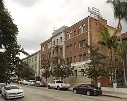 Wilcox Avenue is a major avenue of Los Angeles, running north–south through Hollywood, to the west of Cahuenga Boulevard. It begins to the north of Franklin Avenue from North Cahuenga Boulevard, and then runs south, crossing Sunset Boulevard, Santa Monica Boulevard and Melrose Avenue. The avenue grew primarily as an affluent residential road in the early 20th century, with the building of expensive luxury apartments.[1][2] Silent actress Rosemary Theby once lived at 1907 Wilcox Avenue.[3] The Mark Twain Hotel, a white stucco hotel named after writer Mark Twain, is located at 1622 Wilcox and was recently (2016) restored and converted into a boutique inn.[4] There are several bars and restaurants including Paladar, a Cuban restaurant and bar at 1651 Wilcox Avenue, and The Nacional, a Havana-style cocktail bar next door at 1645.[5] 1626 North Wilcox Avenue is the location of a company known as Hollywood Mail which rents hundreds of physical addresses for those who wish to make it appear that their business is actually located at that address.[6]