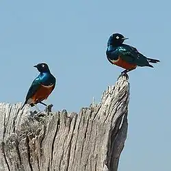 Superb starlings (Lamprotornis superbus) observed in the Ruaha National Park