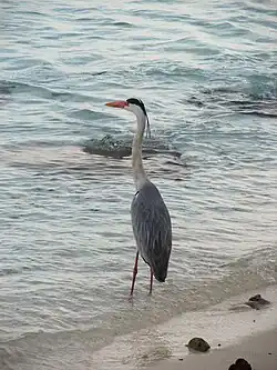 The location of this Indian Ocean archipelago means that its avifauna is mainly restricted to pelagic birds. Most of the species are Eurasian migratory birds, only a few being typically associated with the Indian sub-continent. Some, like the frigatebird are seasonal. There are also birds that dwell in marshes and island bush, like the grey heron and the moorhen. White terns are found occasionally on the southern islands due to their rich habitats.[5]
