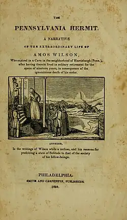 - ^ a b c d e f g h The Pennsylvania Hermit: a Narrative of the Extraordinary Life of Amos Wilson (1839). Philadelphia: Smith & Carpenter.