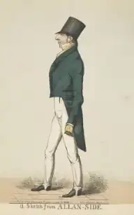 He was born on 20 August 1788 at Hillside House in Edinburgh (at the top of Leith Walk), the son of Alexander Allan (1747-1825), a banker, and his wife Ann Losh. His father had purchased the Hillside estate, which included most of Calton Hill and the lands to the north, in 1785 from James Grant or John Plenderleith for £10,500. He also had a townhouse at 20 Charlotte Square and owned the huge 3500 acre Glen estate at Innerleithen. Hillside House stood east of Gayfield Square at the head of Leith Walk where Elm Row and Hillside street now stand.[1] His father's bank was at 126 High Street on the Royal Mile.[2]