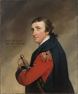 Amherst was commissioned as an ensign in the First Regiment of Foot Guards in 1755.[2] He eventually rose to the rank of lieutenant general in 1779.[2] As a lieutenant colonel, Amherst was instrumental in the re-capture of St. John's from the French in 1762 at the Battle of Signal Hill.[2] An area near Signal Hill at the entrance of St. John's harbour is named "Fort Amherst" in commemoration of his victory in 1762.