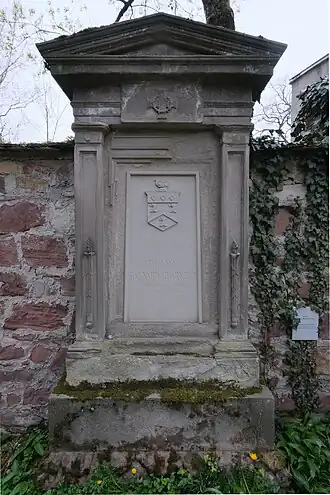 74. ^ "Fotografien der einzelnen Grabmale, Nr. 600 -1197". Webseite der Gesellschaft der Freunde und Förderer des Alten Friedhofes in Freiburg im Breisgau e.V. Photograph of the weathered stone (No. 997). Retrieved 4 August 2023.