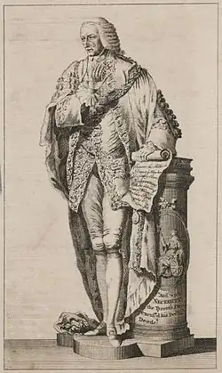 Sir William Beckford (December 1709 – 21 June 1770) was an English Whig politician who twice served as Lord Mayor of London in 1762 and 1769. One of the best known political figures in Georgian era London, his vast wealth derived from the sugar plantations and hundreds of slaves he owned in the British colony of Jamaica. In Britain, Beckford was a supporter of the Whig party, including Prime Minister William Pitt, 1st Earl of Chatham. He also publicly supported progressive causes and frequently championed the London public.[1][2]