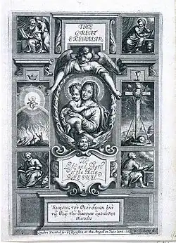 Faithorne was born in London and was apprenticed to William Peake.[1] On the outbreak of the Civil War Faithorne accompanied his master into the king's service, and being made prisoner at Basing House, he was confined for some time to Aldersgate, where, however, he was permitted to follow his profession of engraver, and among other portraits did a small one of George Villiers, 1st Duke of Buckingham.[2]