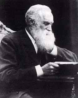 For many years, Sloan's work in the Faroes progressed slowly, but eventually a few people started gathering in "Ebenezer Hall" also known as "Sloan's Hall", which was built in Tórshavn in 1879.[3] The first baptisms by immersion were held in 1880, which caused some controversy at the time. As the number of congregants increased, a new and bigger "Ebenezer" was built in 1905. Other Brethren congregations were also established in the islands as a result of the work of Sloan and those who supported him.[4]