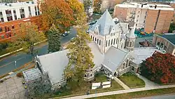 Wood's architecture can be seen in this drone shot of Christ Episcopal Church in Bloomfield & Glen Ridge.