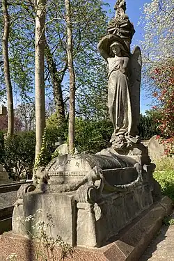 Crossland died at 57 Albert Street, Camden, London on 14 November 1908 following a stroke.[2][3][81] His wife Lavinia, his brother James Crossland, his common-law wife Eliza Ruth Hatt,[nb 3] his daughter Maud Lart, his parents-in-law and his stepson Benjamin Tilley Hatt are buried in a family vault at Highgate Cemetery. Although Crossland's will specifically stated that he and his son should be interred there, neither of them is in the family vault.[82] Crossland's place of burial is unknown.[82][83]