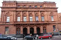 Among Lynn's most prominent designs working on his own were his work at Queen's University, Belfast, the Carlisle Memorial Methodist Church, Carlisle Circus, Belfast (1872–5; now semi-derelict and being restored)[4] and the Ruskinian "Venetian" Gothic Belfast Bank on College Green, Dublin (1892), now housing a grand pub.[5] Among his other later public commissions in Belfast were the Central Library (1883–8), the Bank Buildings (1895–1900), and Campbell College (1891–4). In part on the success of the Chester Town Hall he was commissioned to produce designs for Paisley Town Hall in Scotland (1875–82), and Barrow-in-Furness Town Hall in Cumbria (previously North Lancashire) (1882–87), as well as the extension (1891–95) to the Italianate Harbour Office, Belfast.