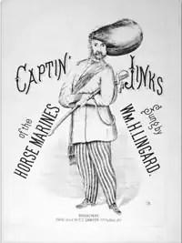 Lingard is chiefly remembered for the well-known vaudeville song, "Captain Jinks of the Horse Marines", sometimes shortened to simply "Captain Jinks." Lingard wrote the lyrics, and the music is attributed to T. Maclagan.[14] It was a popular song of the 19th century, and is still sung to this day, having entered the country-western and bluegrass repertory.[15] The song later became the basis of a stage comedy of the same title, written by Clyde Fitch, and a 1975 opera by Jack Beeson. The song has various renditions.