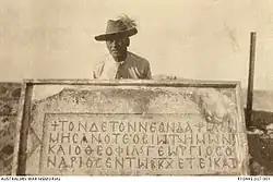 William Maitland Woods with the inscription from the Shellal Mosaic, circa April 1917