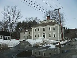 The William Norcross House is located in the village center of Monson, on the north side of Cushman Street a short way east of Main Street. It is a 2+1⁄2-story wood-frame structure, with a central chimney, a hip roof that has a central monitor section, and a clapboarded exterior. The building corners have wooden quoin blocks, and windows on the ground floor are topped by projecting peaked lintels. The main entrance is on the western facade, and is flanked by pilasters and topped by a half-round transom and gabled pediment. Secondary entrances added later are located on the street-facing eastern facade.[2]