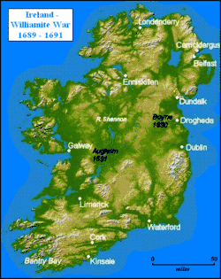 The Peace of Ryswick brought an end to the War of the League of Augsburg in 1697. This meant the disbanding of two of the regiment's three battalions, though O'Shaughnessy was kept on, been appointed captain of the regiment's Grenadiers.