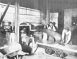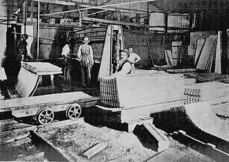 Sandford embarked on a major expansion, starting with the construction of a large modern blast furnace. On 30 April 1907, his daughter, Clarice, started the blast of the new furnace, and Sandford's proudest moment was when it was officially opened on 13 May 1907.[36][37][38][39] As part of the same expansion, a new 15-ton Open Hearth furnace was added to make steel from the pig-iron,[37] a new fishplate mill commenced operation in 1906, and a short rail branch line laid to the iron ore mine at Coombing Park near Carcoar.[40][41] The Lithgow works had become the first integrated iron and steel works in Australia.