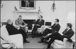 On Thanksgiving Day 1971, two months after the Attica State prison riots in upstate New York, a similar rebellion rose at Rahway State Prison. The revolt was quieted without violence, and Cahill's role in ending the conflict was widely commended.[1] Cahill also appointed a commission that recommended the creation of a state income tax, which proved to be controversial with voters. The proposal was defeated in July 1972, but a state income tax was finally instituted four years later, after Cahill left office.[1]