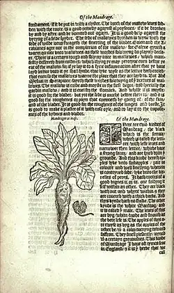 A New Book of Spiritual Physick was published in 1555. In 1562, Turner published the second part of his Herbal, dedicated to Sir Thomas Wentworth, son of the patron who had enabled him to go to Cambridge. This book was published by Arnold Birckman of Cologne, and included in the same binding Turner's treatise on baths. The second volume includes one of the earliest reference to the celebrated Glastonbury Thorn, only five miles from Wells, which Turner tells us "is grene all the wynter, as all they that dwell there about do stedfastly holde".[10] The third and last part of Turner's Herbal was published in 1568, in a volume that also contained revised editions of the first and second parts. This was dedicated to Queen Elizabeth. He claimed that the herbal described only English plant species "whereof is no mention made neither of ye old Grecianes nor Latines".[11] A New Boke on the Natures and Properties of all Wines, also published in 1568, had pharmacological intent behind it, as also the included Treatise of Triacle.