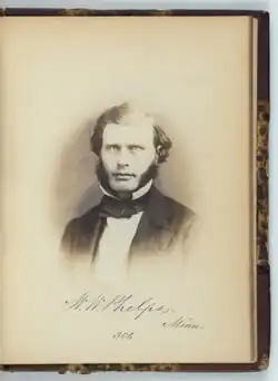 William Wallace Phelps (June 1, 1826 – August 3, 1873) was a United States congressman from Minnesota. He was born in Oakland County, Michigan Territory on June 1, 1826. He attended the country schools and graduated from the University of Michigan at Ann Arbor in 1846, where he was a founding member of the Chi Psi fraternity. He studied law and was admitted to the bar in 1848 and began a practice. (Register of the United States land office at Red Wing, Goodhue County, Minnesota)