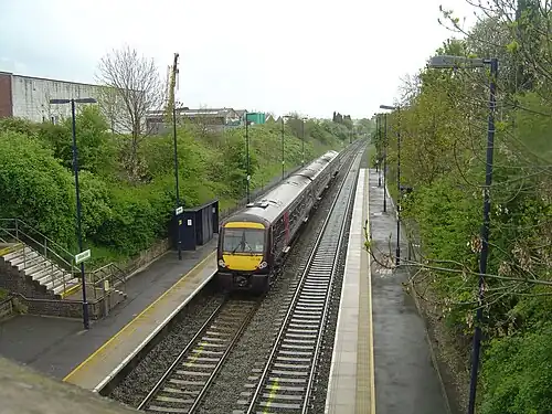 Wilnecote railway station is a railway station serving the town of Fazeley and suburb of Wilnecote in Staffordshire, England. It is 1.5 miles (2 km) south of Tamworth town centre.[2] The station is situated beneath a bridge which carries the former A5 Watling Street.