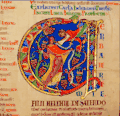 The Winchester Bible is a Romanesque illuminated manuscript produced in Winchester between 1150 and 1175. With folios measuring 583 x 396 mm., it is the largest surviving 12th-century English Bible.[1] The Bible belongs to a group of large-sized Bibles that were made for religious houses all over England and the continent during the 12th century.[2] The Bible is on permanent display in Winchester Cathedral's Kings & Scribes exhibition.